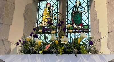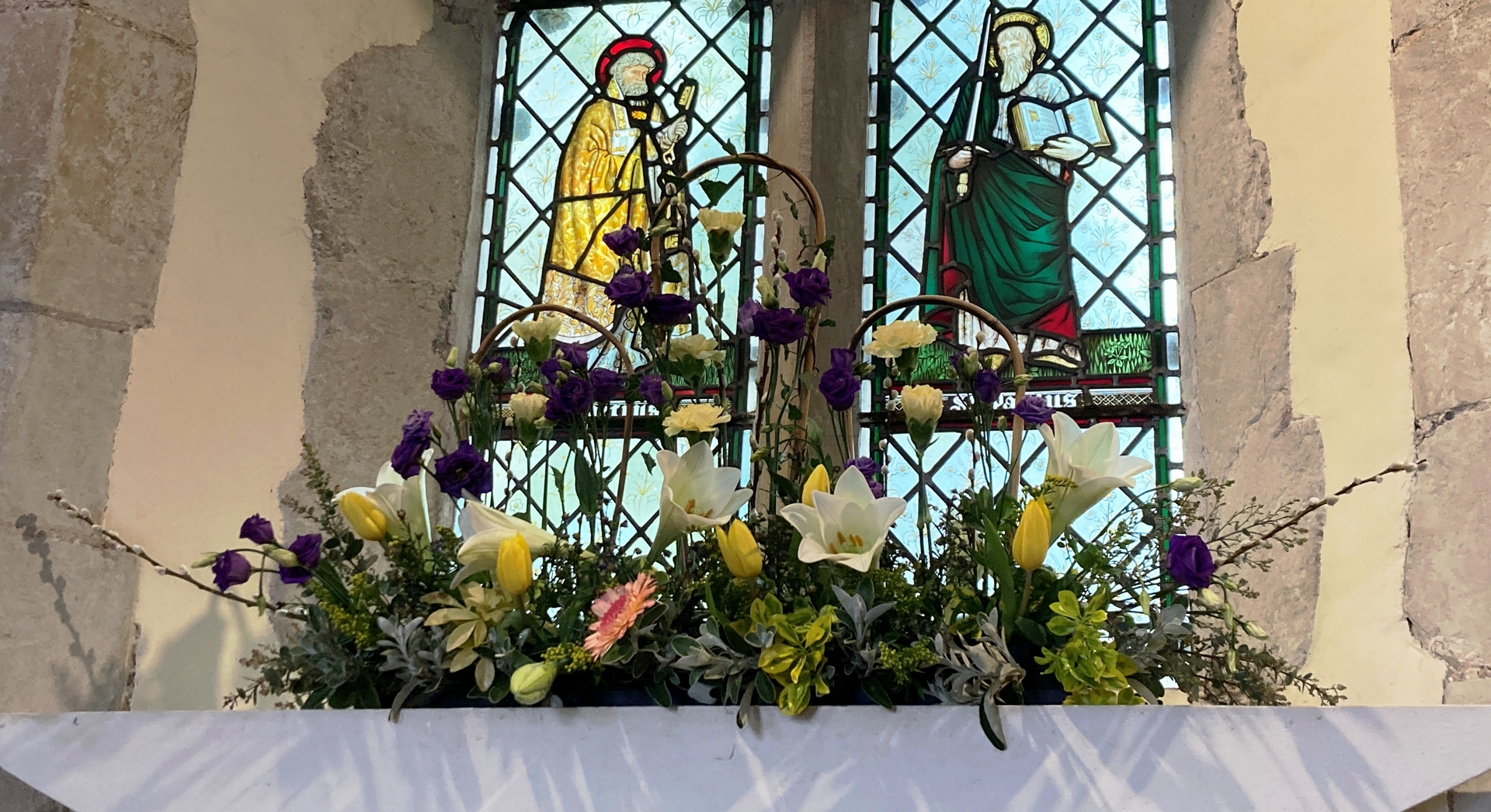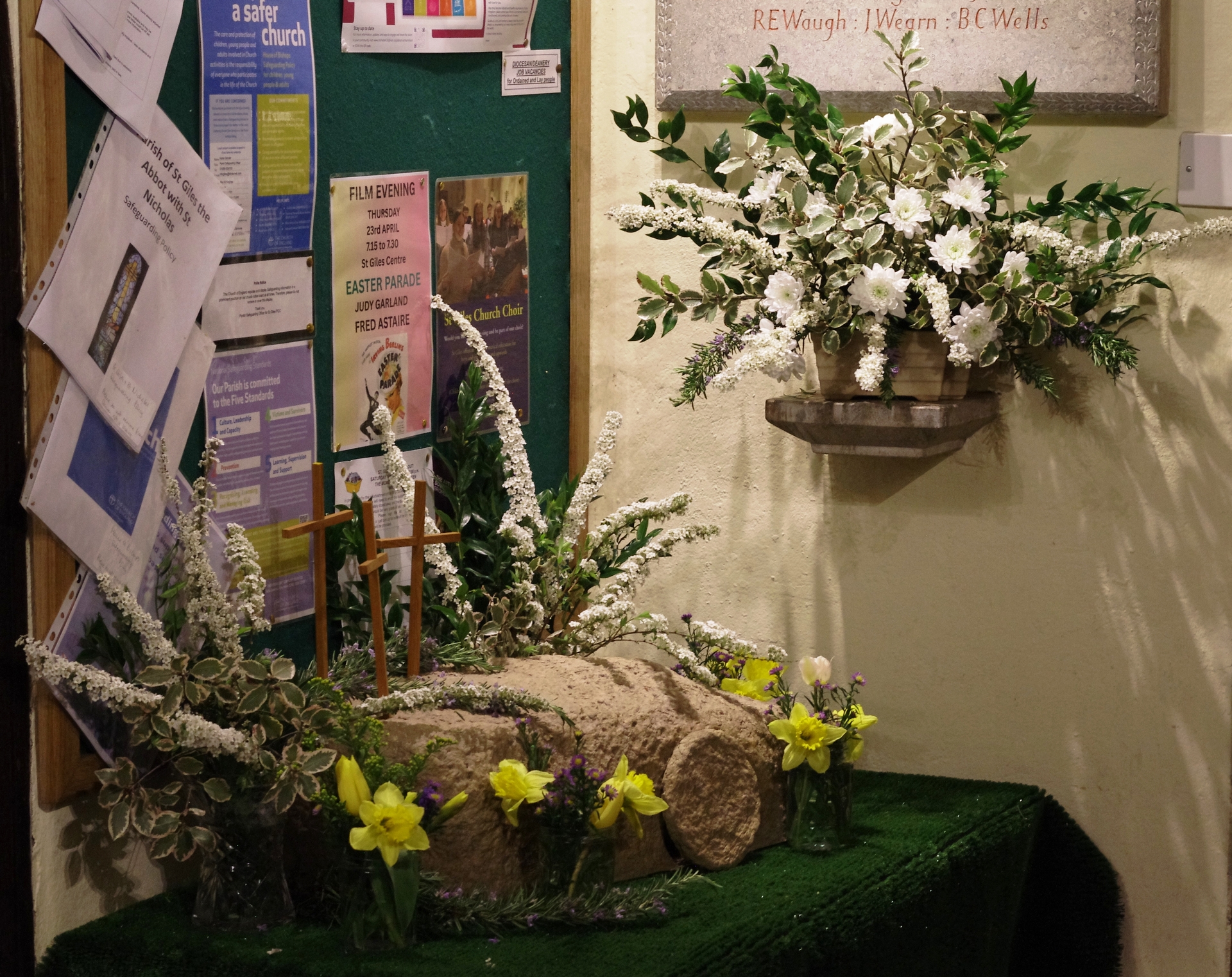 The photos in this column were taken during preparation for Easter. All displays were created entirely by the members of the St. Giles team. At the major festivals of Christmas, Mothering Sunday, Easter and Harvest all the teams work together to fill the church with beautiful colours and aromas. There are no flowers in church during the reflective time of Lent, and only greenery during Advent. <
