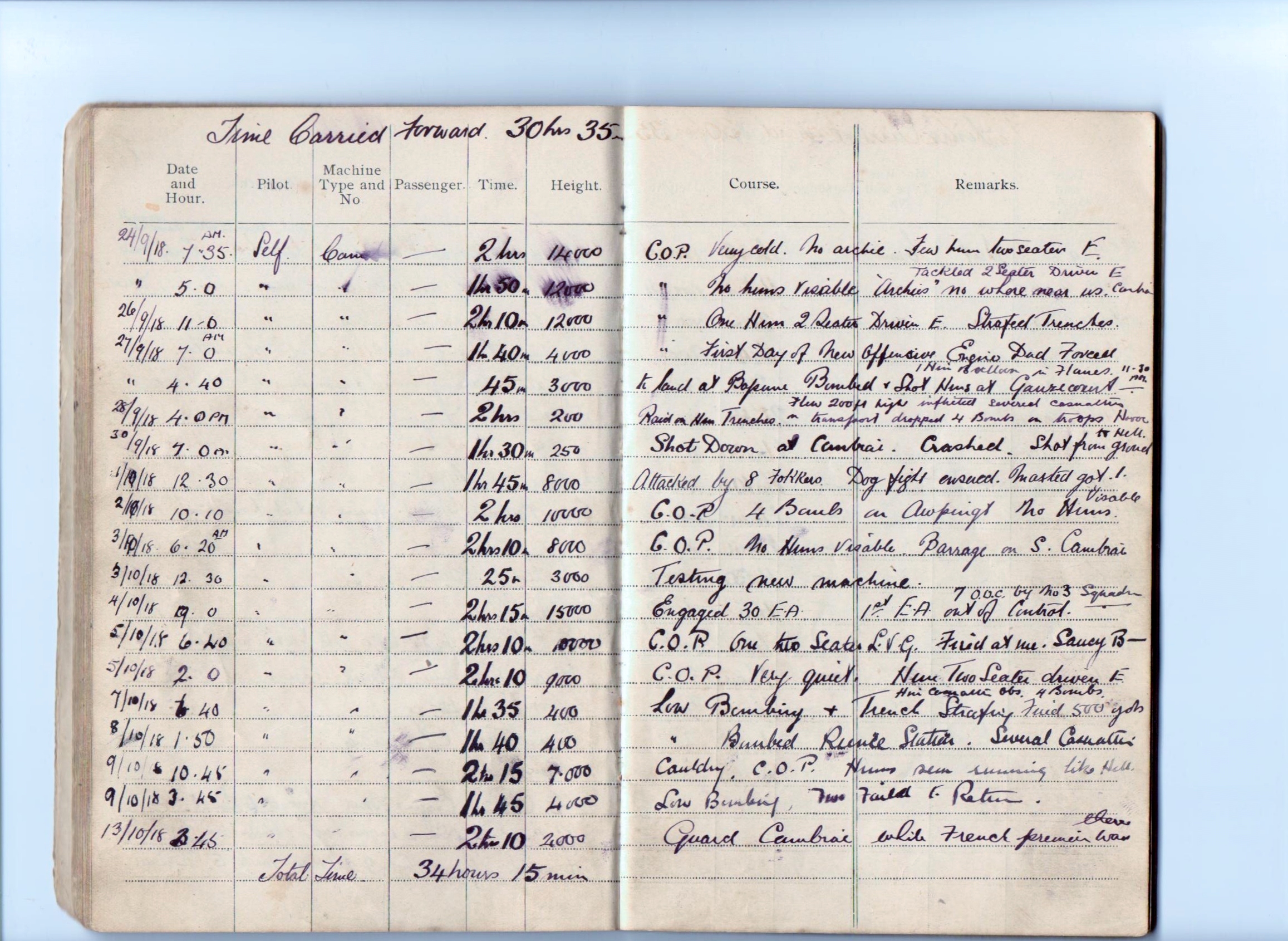 I also have his Pilot’s Flying Log Book from which it states that
