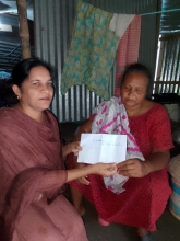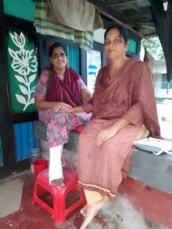 Biliam was able to use funds sent from St. Giles to the church in Bangladesh. The first photo shows Biliam being given a gift by his local manager following a problem releasing the funds from the UK. The others show two local wemen. one had been left by her muslem husband, the other had broken her leg. Both were very grateful for the helping hand,