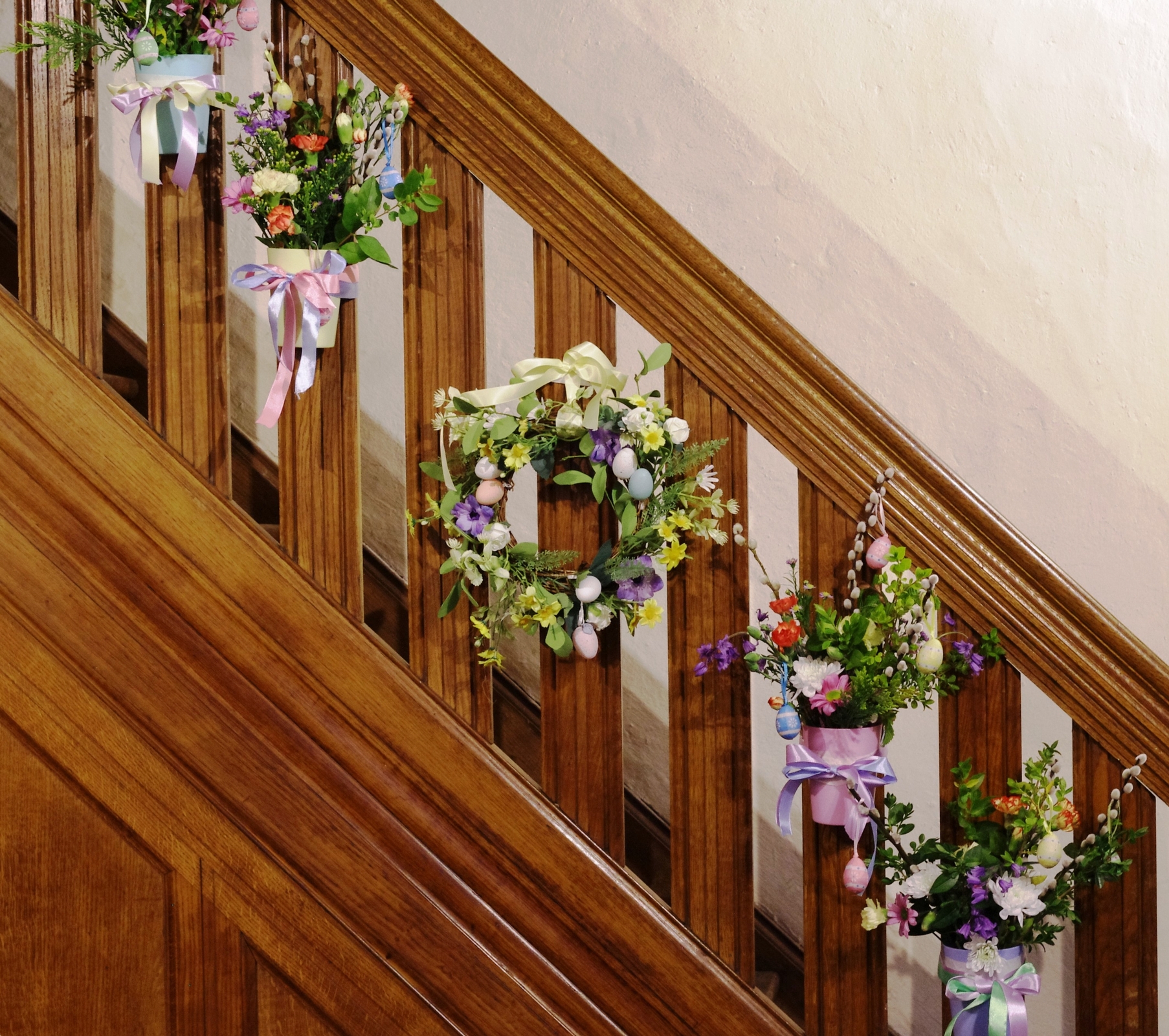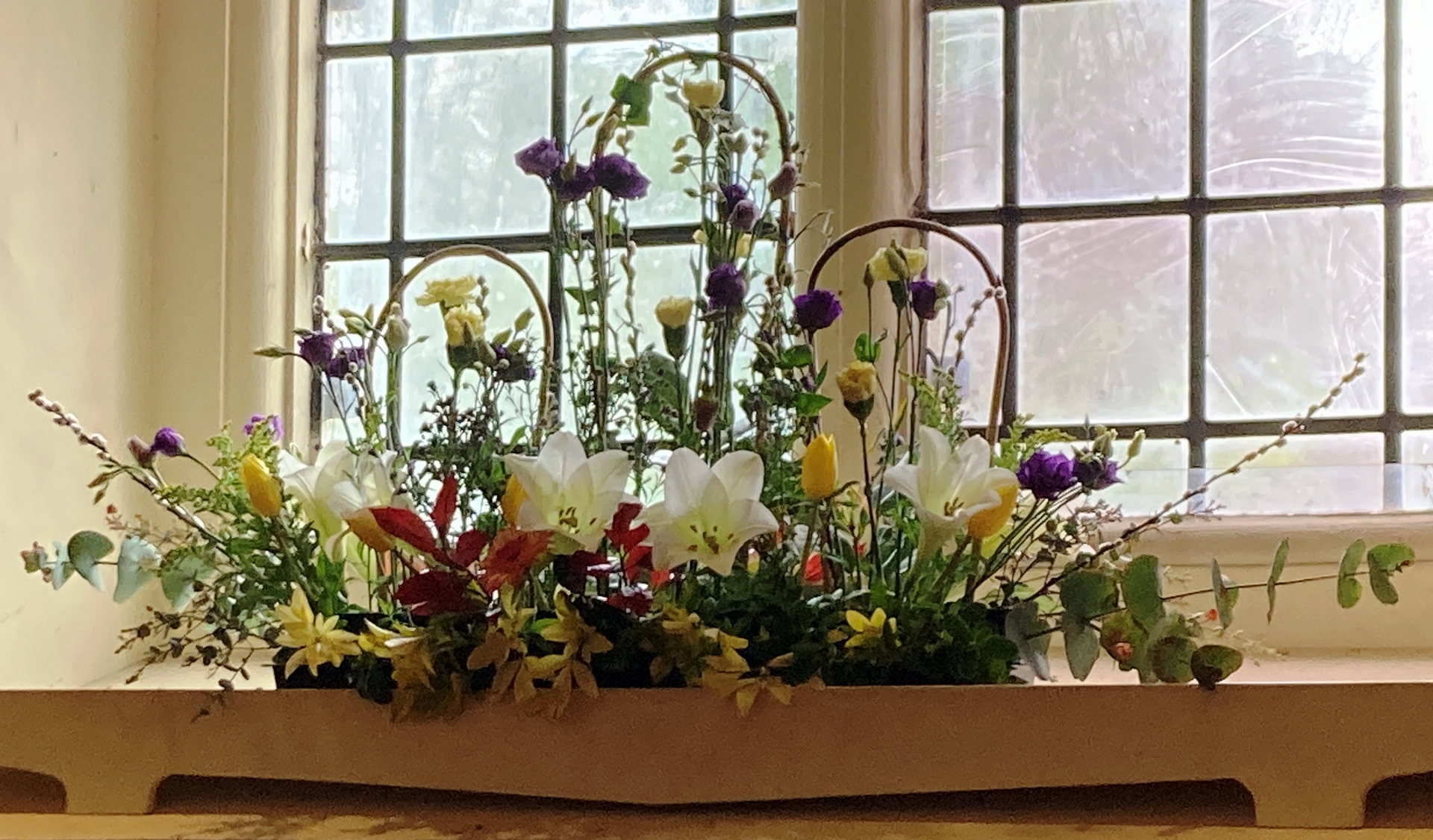 The photos in this column were taken during preparation for Easter. All displays were created entirely by the members of the St. Giles team. At the major festivals of Christmas, Mothering Sunday, Easter and Harvest all the teams work together to fill the church with beautiful colours and aromas. There are no flowers in church during the reflective time of Lent, and only greenery during Advent. <