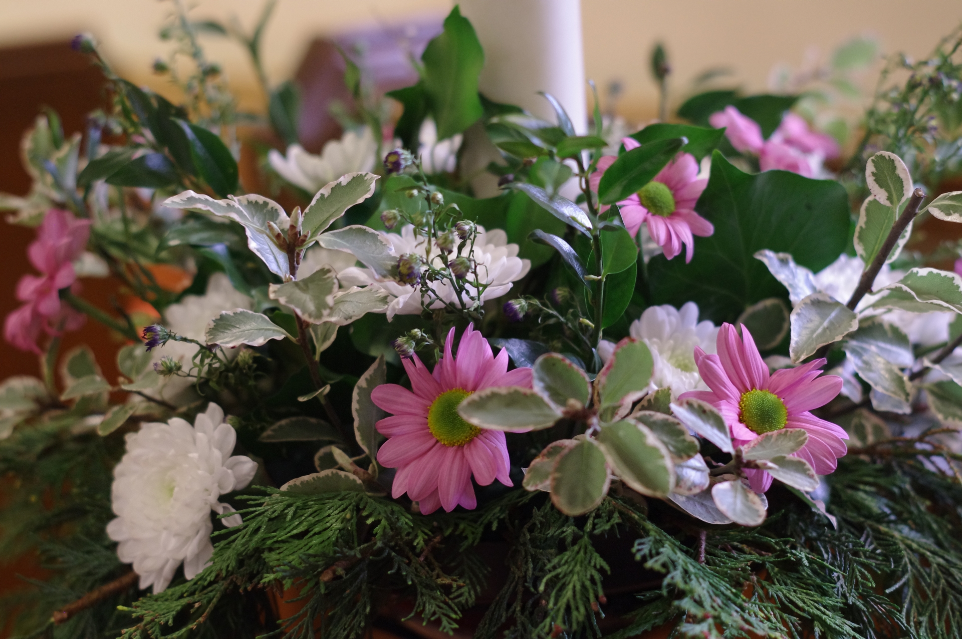 Flowers are arranged in St. Giles by several teams of volunteers who work in rotation. Each team arrange their flowers, usually on Friday afternoons, once a month. More help is always welcome, from the complete beginner to the more experienced. None of the ladies currently on the rota have any formal training but they consider it to be very enjoyable, a great way to make friends and as a service to God and the church.All displays are created entirely by the members of the St. Giles team. At the major festivals of Christmas, Mothering Sunday, Easter and Harvest all the teams work together to fill the church with beautiful colours and aromas. There are no flowers in church during the reflective time of Lent and only greenery during Advent.