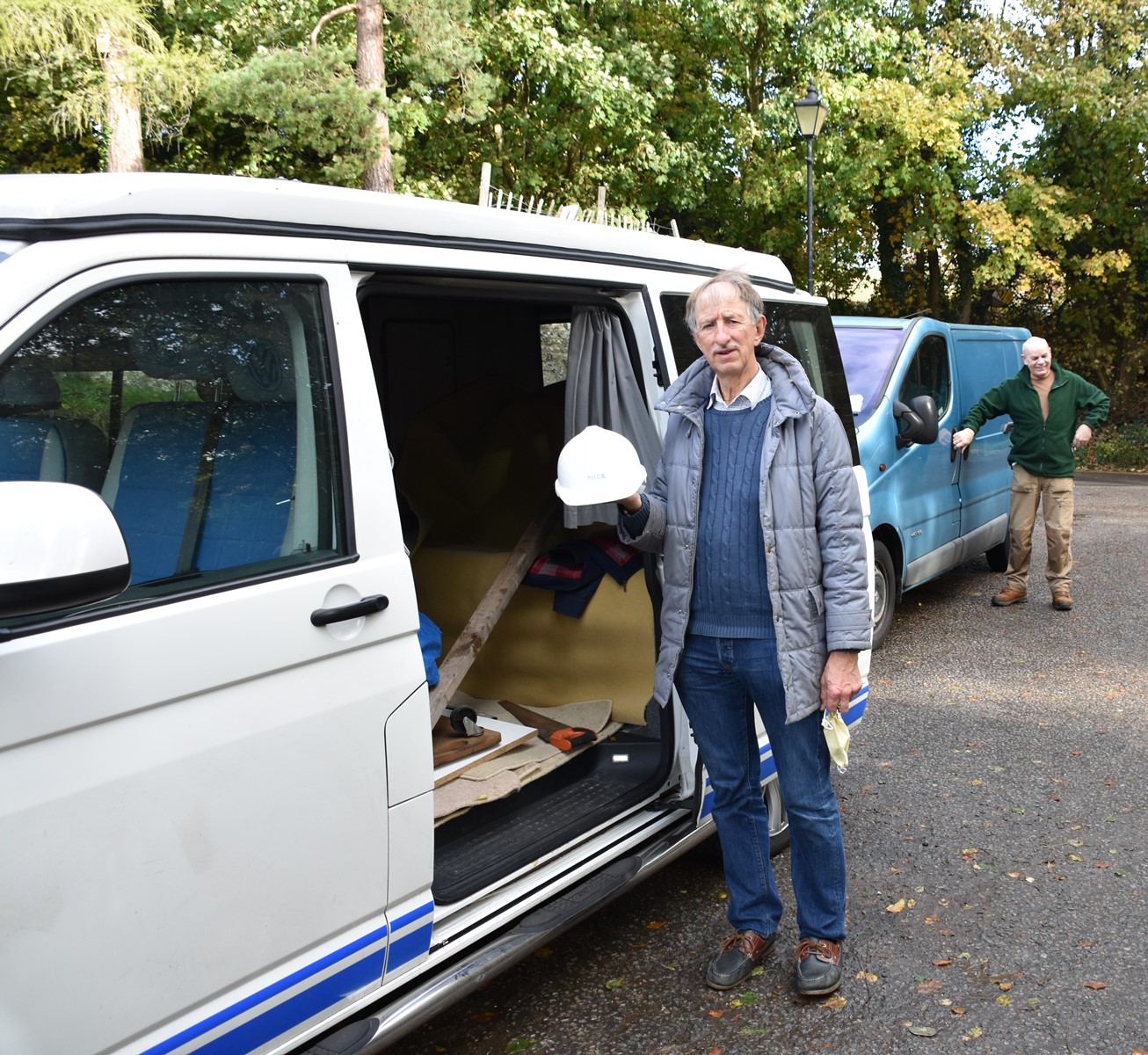Whilst carefully and safely removing a bell from the tower might seem a daunting prospect, we are fortunate to have Brian Butcher, the Bell Restoration Officer of the Kent County Association of Change Ringers (KCACR) to call upon. He has the equipment and expertise to lead such an exercise. Brian suggested coming to Farnborough on Monday, 26th October 2020 and a team of volunteers was assembled to assist.