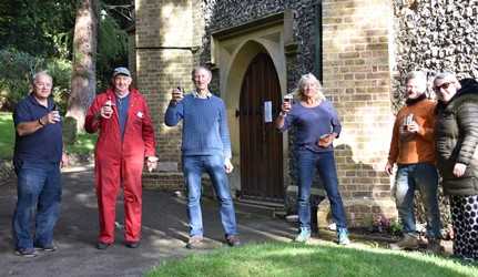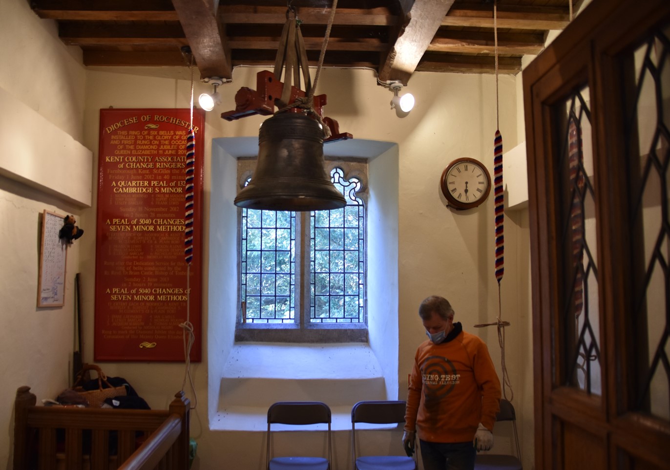 Valued help in addition to Red Leader, Brian Butcher, Kent County Assoc. Bell Restoration Officer, who hails from Hythe, was provided by Lesley Barclay (Horton Kirby), Graham Long (Hayes) and Michael Stuttard (Sevenoaks). Additionally, Doug Fisher ( Limpsfield ) supplied the trolley and Caroline Stockmann (Sevenoaks) kindly provided refreshments to celebrate her birthday that day. Thanks go to them all.