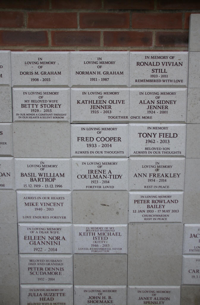 This garden was used for all new burials of ashes between 2012 and mid 2019. It is backed by a further new Wall of Remembrance, known as Phase 3.