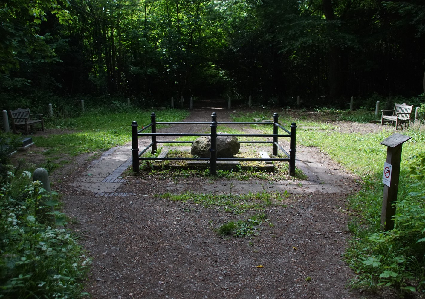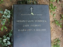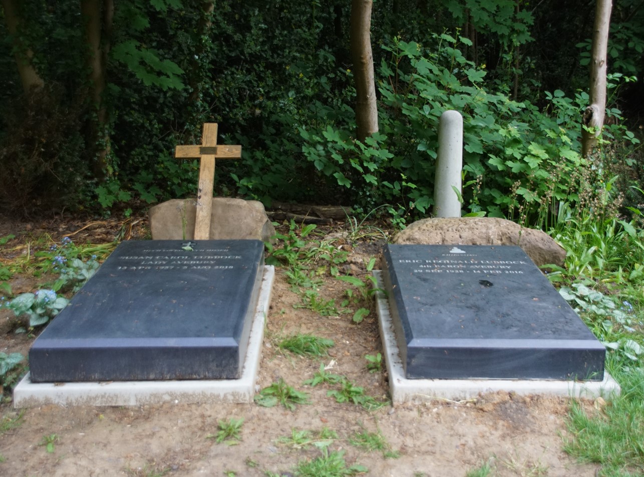 The Lubbock family burial ground is situated in the woods about 100 metres from St. Giles church in the centre of the wide path leading down toward High Elms.