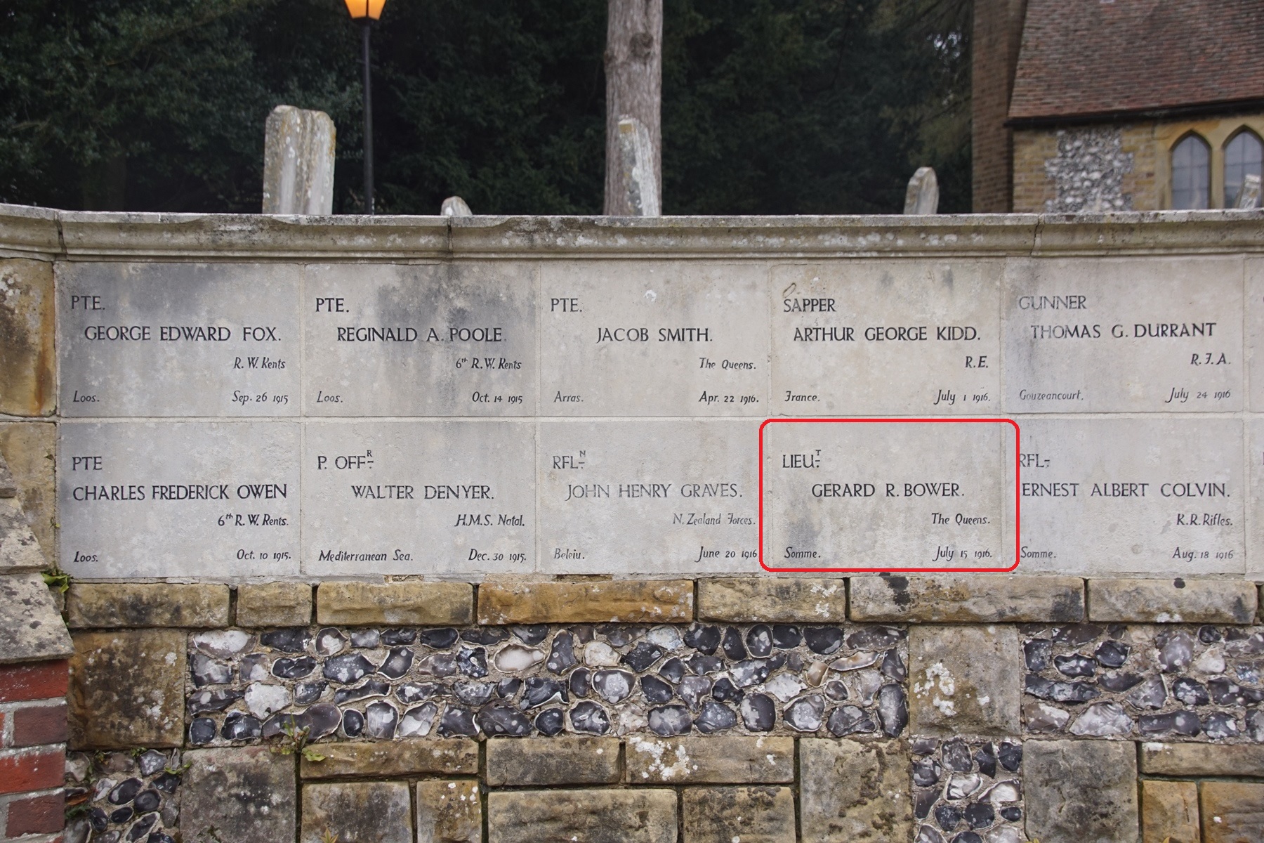 Gerard was just 19 when he fought in the Battle of the Somme. Researching his background I discovered that he was the son of Theodore Herbert and Mary Whichelo Bower. At the time of the battle he was listed as a 2nd Lieutenant in ‘The Queens’, in which case given his young age he probably went straight into officer’s training and then over to France. Trying to identify this particular unit took a lot of effort as there were a large number of battalions and regiments that had this phrase in their titles. As a result I went down a number of false leads, however I finally tracked down the 1st Battalion ‘The Queens’ as the most likely candidate. This unit was part of 100 Brigade which formed part of the 33rd Division whose badge was a pair of three spotted dice.The 33rd Division was part of Kitchener’s New Army and had been raised in 1915. It was mostly comprised of locally raised units known as ‘Pals’ with large numbers of recruits coming from public schools, footballers, sportsmen and a strong contingent from the Church Lads Brigade. It was mostly raised in the south of England. Given Gerard Bower’s young age and the fact that he probably went into this unit straight out of school I concluded that this division was the most likely one that he served in, given the background of the 33rd.