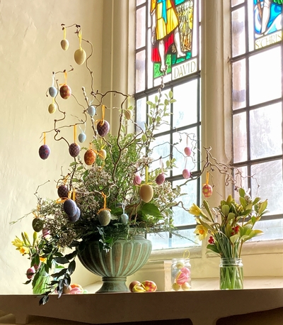 The St. Giles flower teams combined to prepare the church for Easter Sunday services. Photos by Lesley Parsons, Click to enlarge