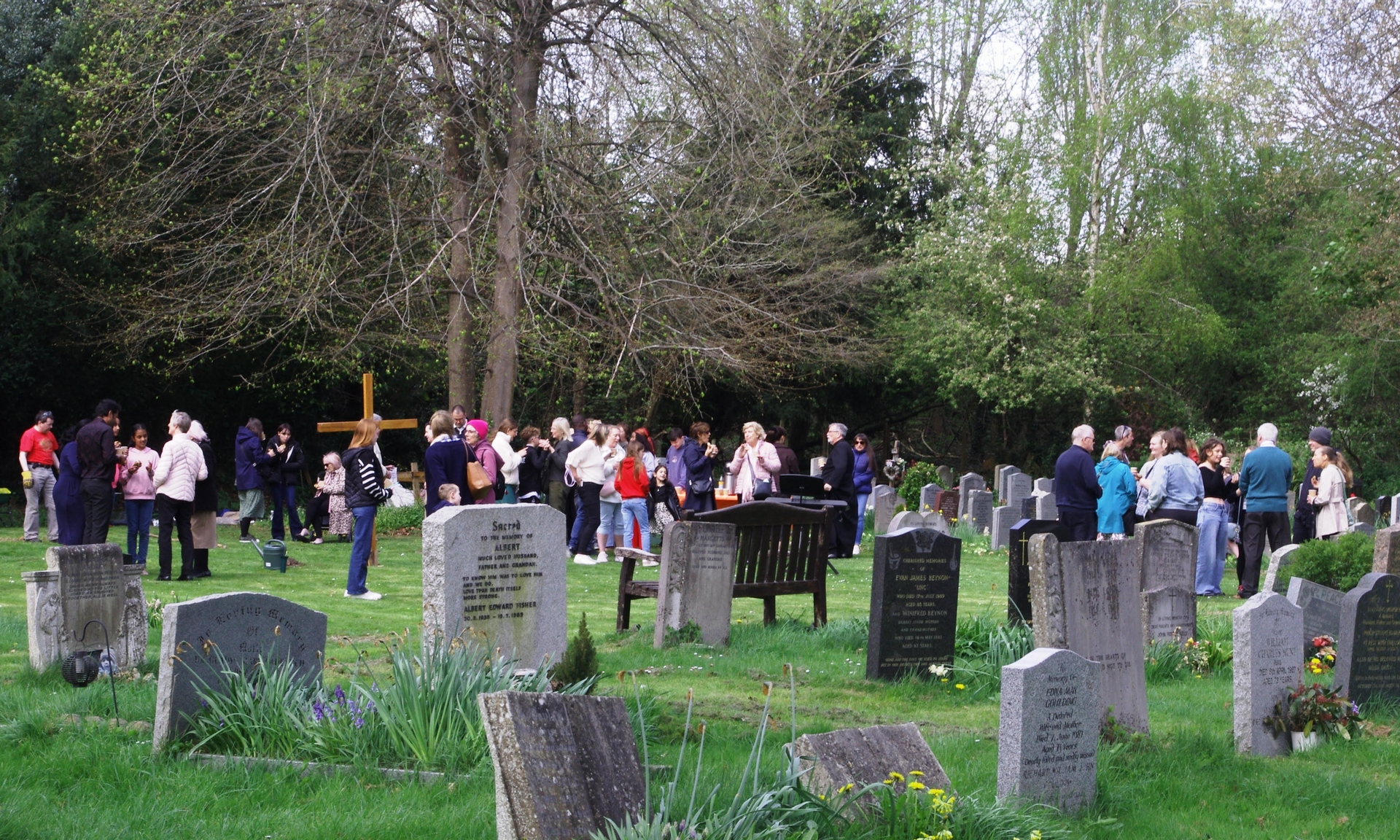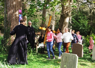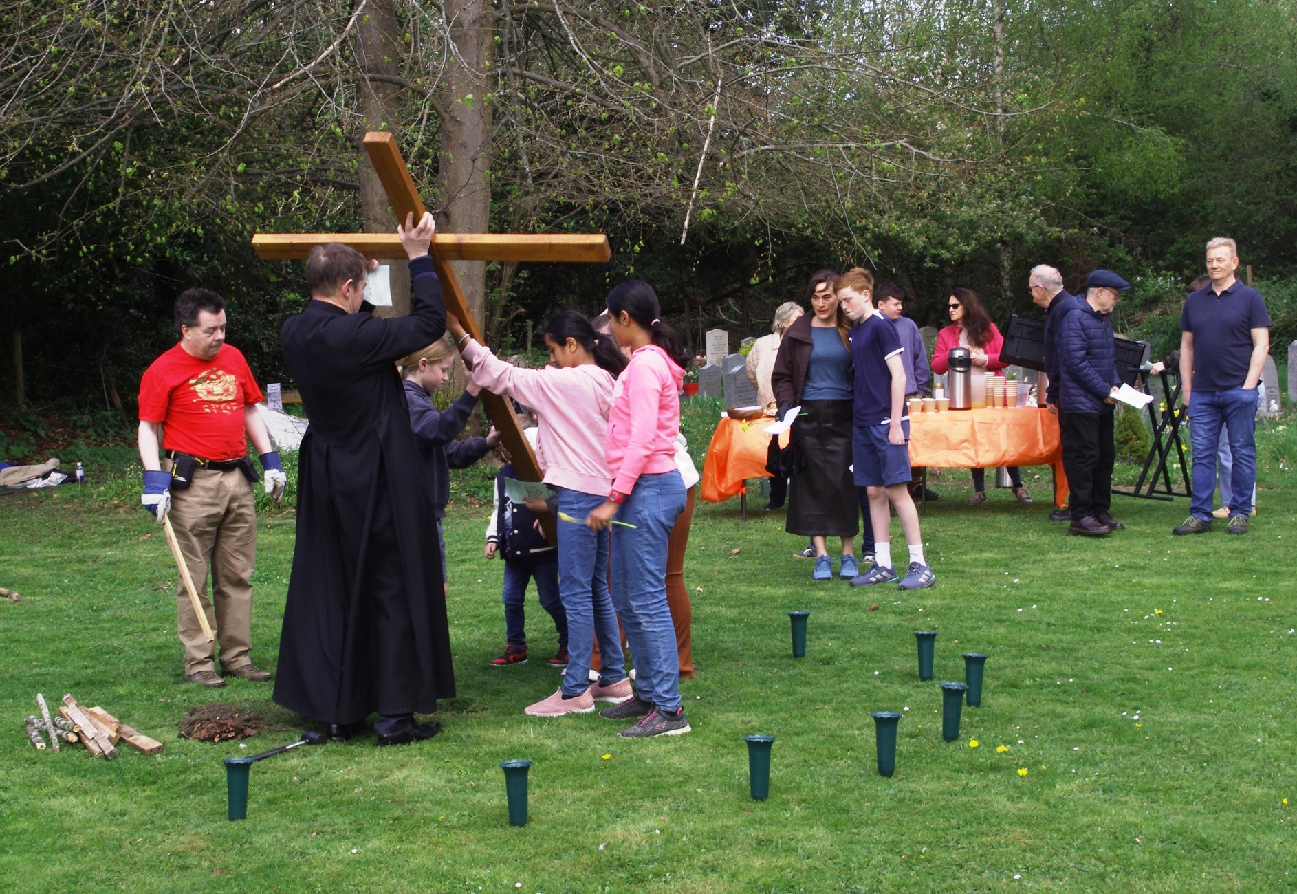 The service in the church was followed by Stations of the Cross in the Churchyard, and then Hot Cross Buns and tea/coffee/soft drinks round an open fire Photos by Lesley Parsons, Click to enlarge