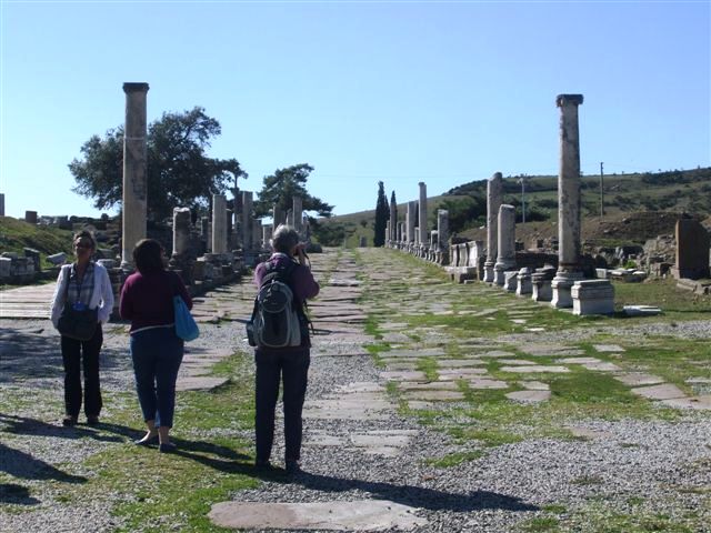 While most of Europe put their clocks back an hour overnight, Turkey had decided to postpone it for two weeks due to upcoming elections. However most of our mobile phones automatically put clocks back an hour so some of us overslept! Also the alarm calls booked with reception didn’t happen so it was a rushed start to the day. We all managed to get ready for the coach at 8am but our guide overslept too and was 10 minutes late! Apparently this affected many businesses across the whole country! In fact the computer screens on the planes on the way home were still showing the wrong time! At various locations in our trip we read the appropriate Bible passages and were given some reflections and questions or challenges from Alison. (Shown in Italic)A narrow staircase leads down to the theatre that could hold 10,000 on the side of the hill overlooking the valley below. Nearby is the temple of Dionysos. The Asklepion, a centre of ancient medicine in the time of Galen is situated well below the Acropolis. Besides a stoa and a theatre, the most impressive remains here are circular temples of Asklepios and Telephorus.